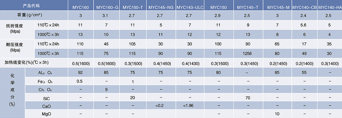粘土結合澆注料          MYC140-CB